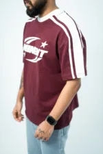 Maroon Striped Oversized T-shirt