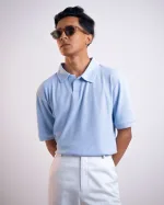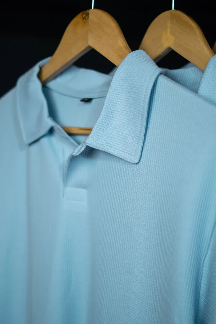 Old Money Waffle Polo Baby Blue