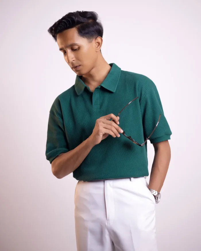Old Money Waffle Polo Green